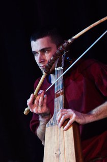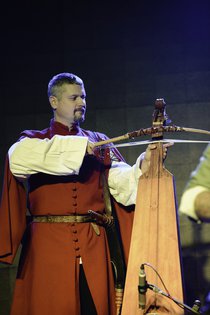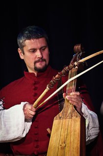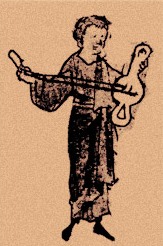 Музыка грае на гудку на фрагменце мініяцюры "Давыд грае, пісцы пішуць, а народ трубіць", Тлумачальны Псалтыр першай паловы ХVІ ст. "віленскай школы"