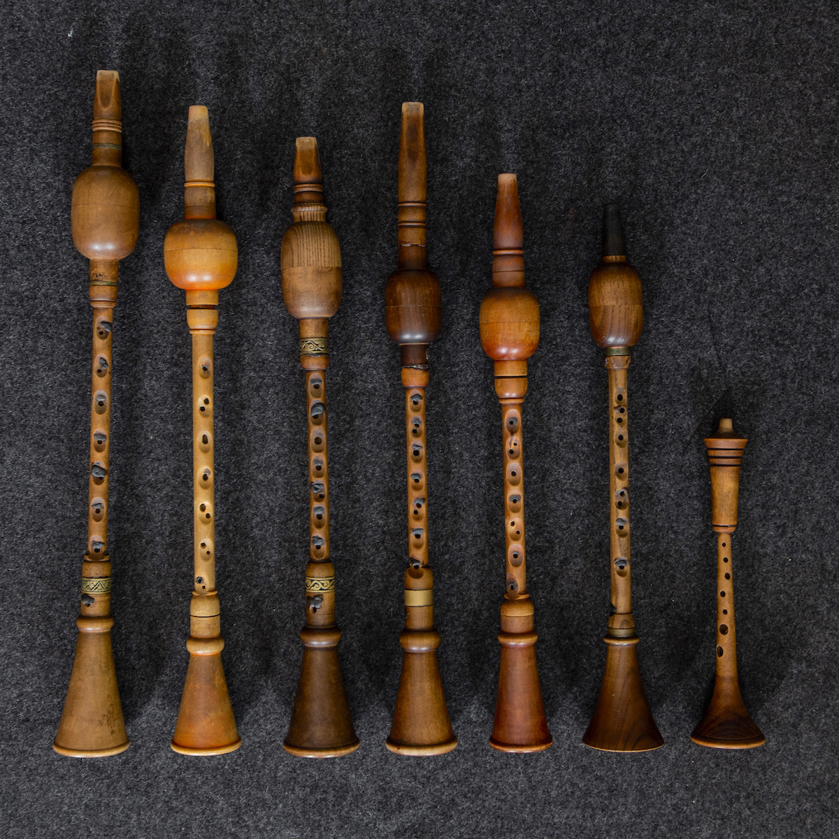 Stary Olsa uses three shawms in G and two shawms in D by Belarusian master Todar Kashkurevich.