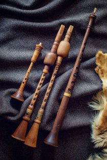 Шалмей (жалейка) в строе Ре − язычковый инструмент в виде трубки с игровыми отверстиями и одинарным язычком.
