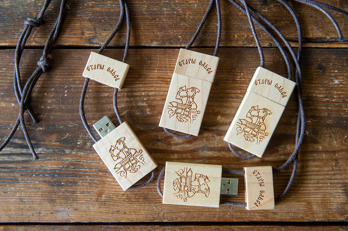 Деревянная USB флешка 16 ГБ с выгравированным логотипом группы, колпачком на магнитах и шнурком. На флешке: вся дискография группы "Стары Ольса" (wav, mp3), ноты и тексты песен, постер.