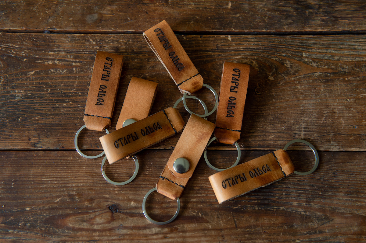 Кожаный брелок "Стары Ольса". Кожаная часть имеет кнопку для расстегивания, что позволяет носить на поясе.